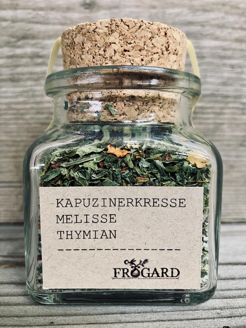 INHALT: Salz, Kapuzinerkresse, Melisse, Thymian